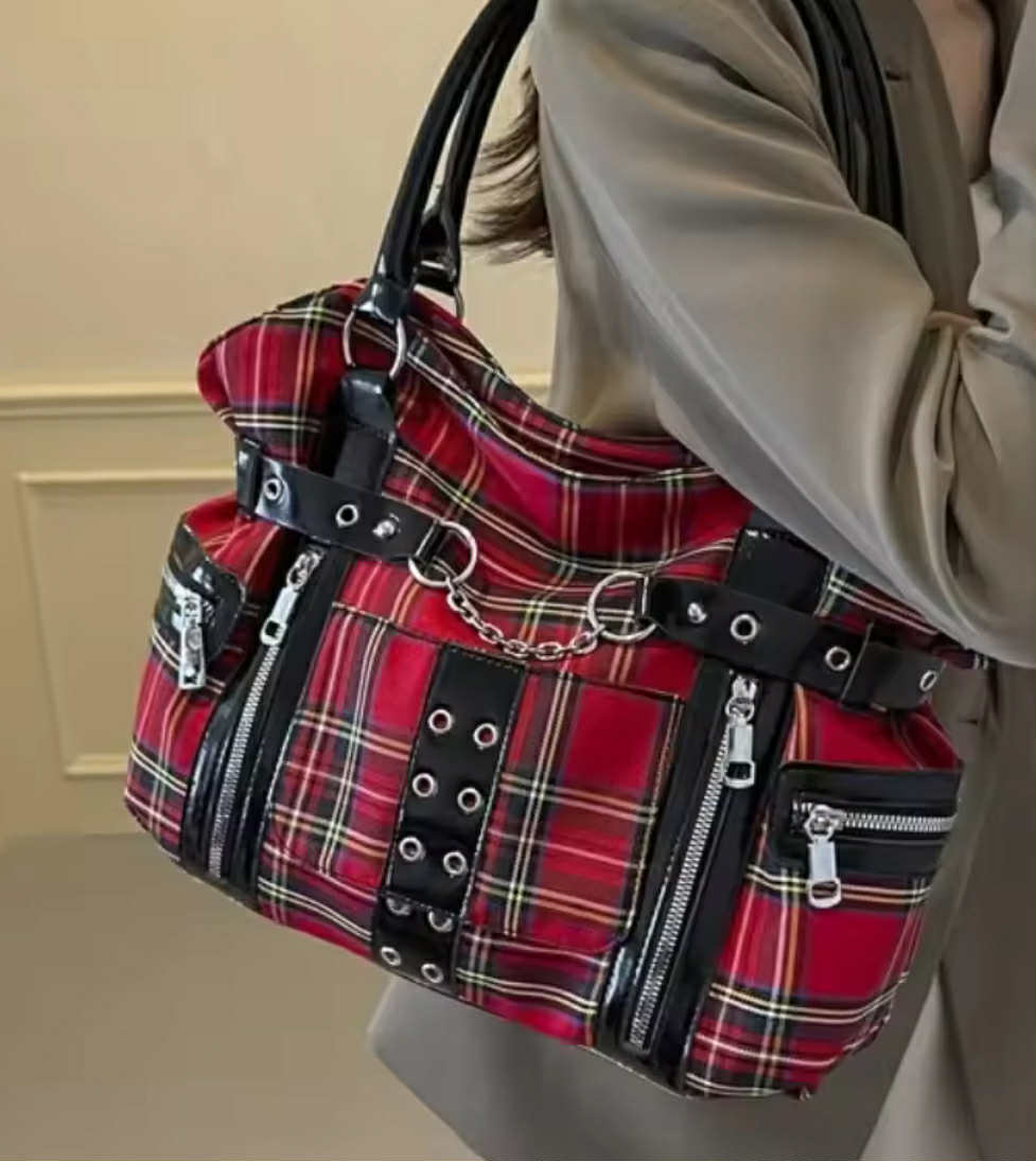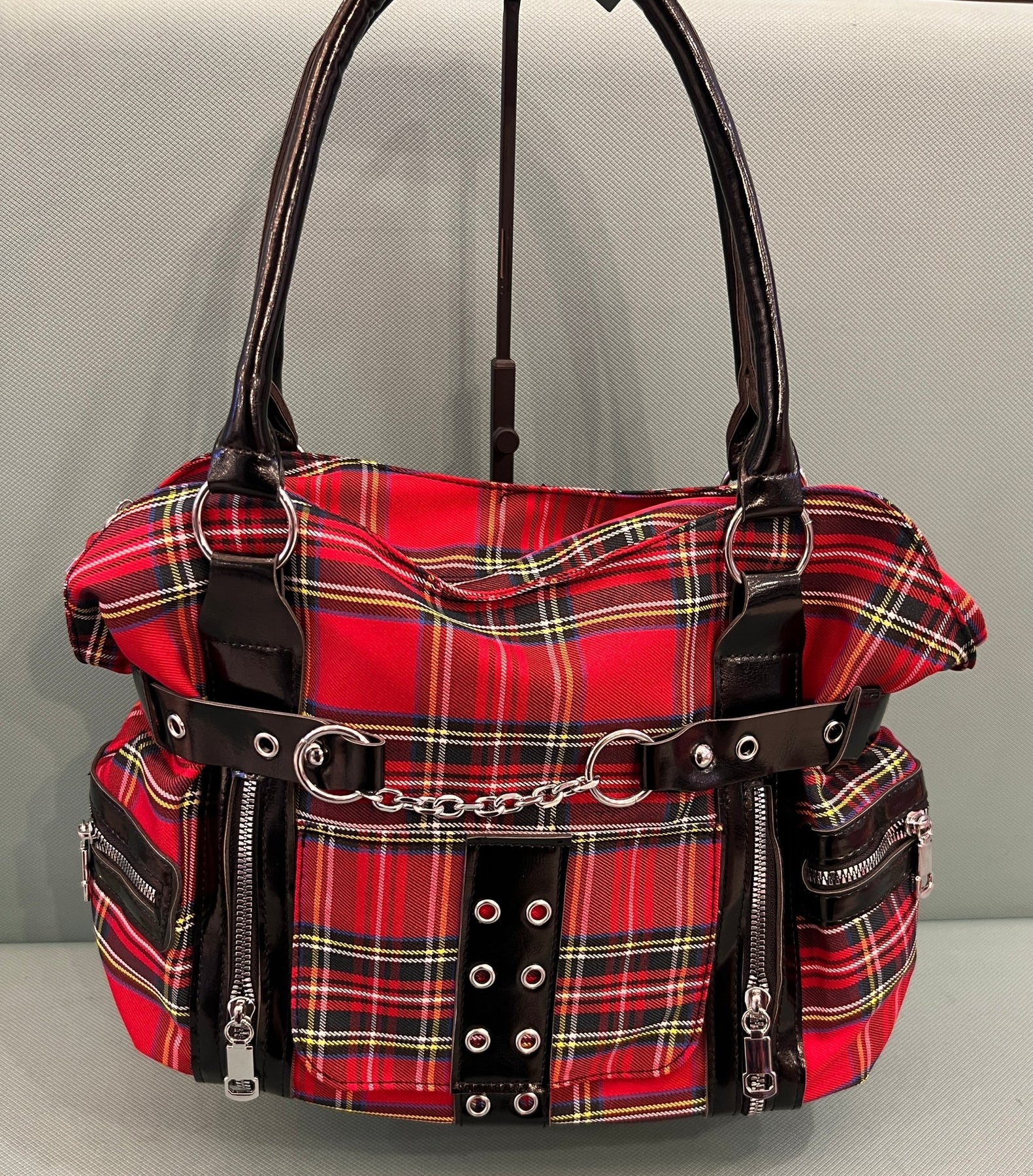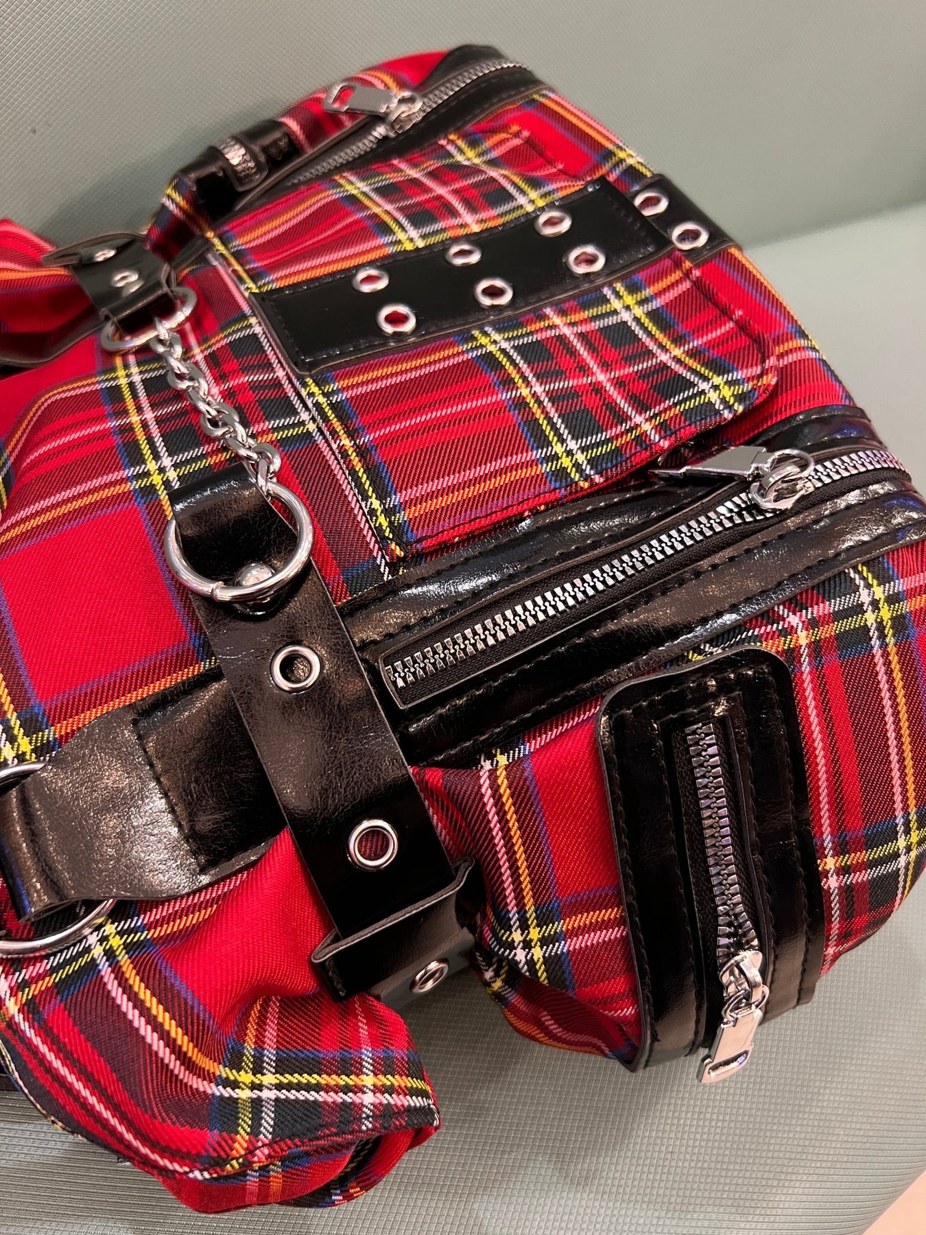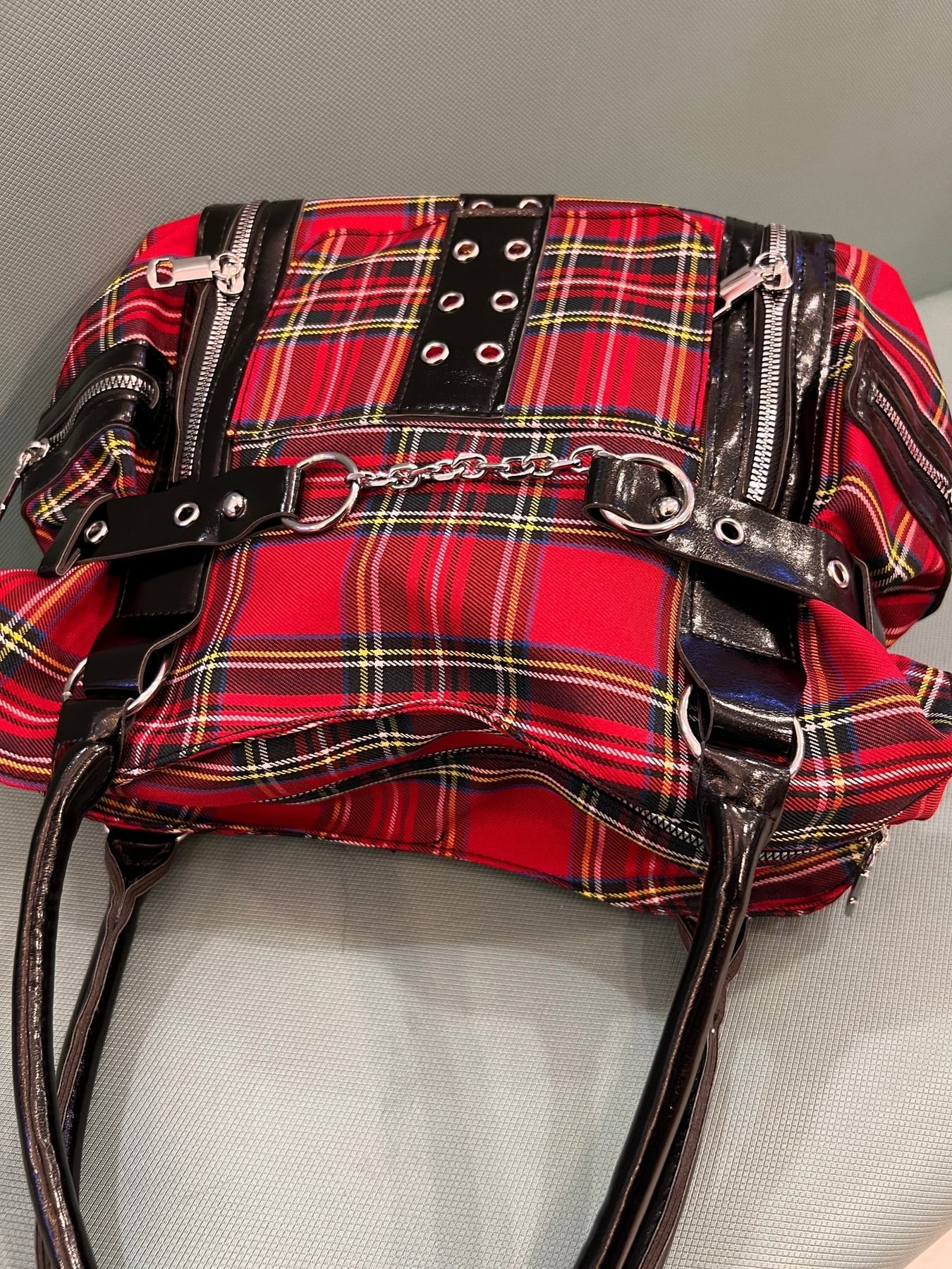 Single open internal pouch with small internal zip pocket. Outer zippers are "faux pockets" for detail/look only.