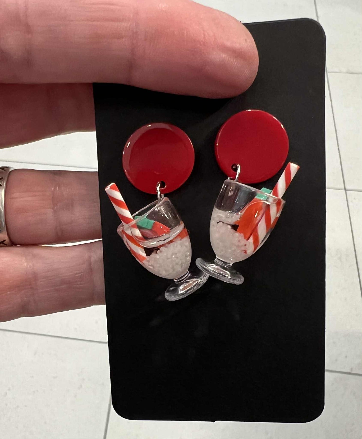 Acrylic topper with stainless steel pin and silicone stopper. Hypoallergenic. Total drop 3.8cm; character piece measures 2.2cm on its own.